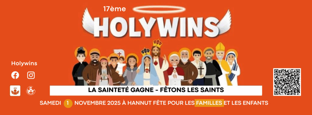Invitation & Communiqué – Liège, le 28 octobre 2025. Enfants, parents et grands-parents se préparent à fêter la 17è édition d’HolyWins. Ce joyeux évènement a été initié en 2008 en Belgique afin de redonner tout son sens à la fête de la Toussaint. Les dernières éditions ont regroupé environ 180 enfants et adultes.