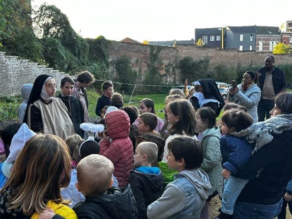 La famille carmélitaine était de sortie pour la 15è fête HolyWins qui a eu lieu à Liège le dimanche 29 octobre 2023. La mystérieuse sainte à découvrir était sainte Thérèse de l’Enfant-Jésus ou de Lisieux (1873-1897), dont l’Unesco met en valeur le 150ème anniversaire de sa naissance en 2023. Plus de 140 adultes et enfants ont participé à cet évènement familial qui met en lumière et de façon renouvelée la fête de la Toussaint au travers de l’exemple de saintes et de saints inspirants et lumineux. La plupart des enfants étaient déguisés en leur saint favori. La journée avait débuté par une messe des familles suivie par un repas partagé en mode auberge espagnole. La pluie a cessé à 14h, au moment précis du démarrage du grand jeu dont le départ était fixé au sanctuaire de sainte Julienne de Cornillon. C’est précisément l’ancien carmel de Liège.